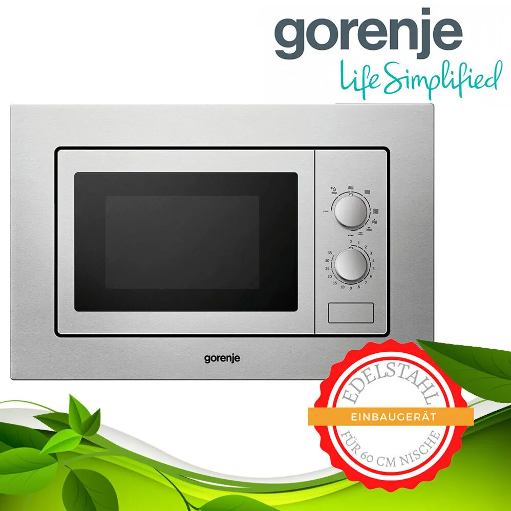 Gorenje BM201EM1X Einbau-Mikrowelle Edelstahl, 60 Cm, 20 L, 5 Leistungsstufen, 700W