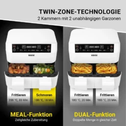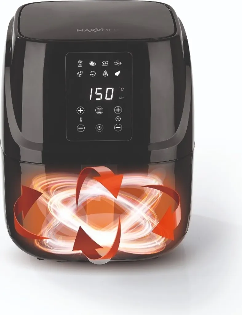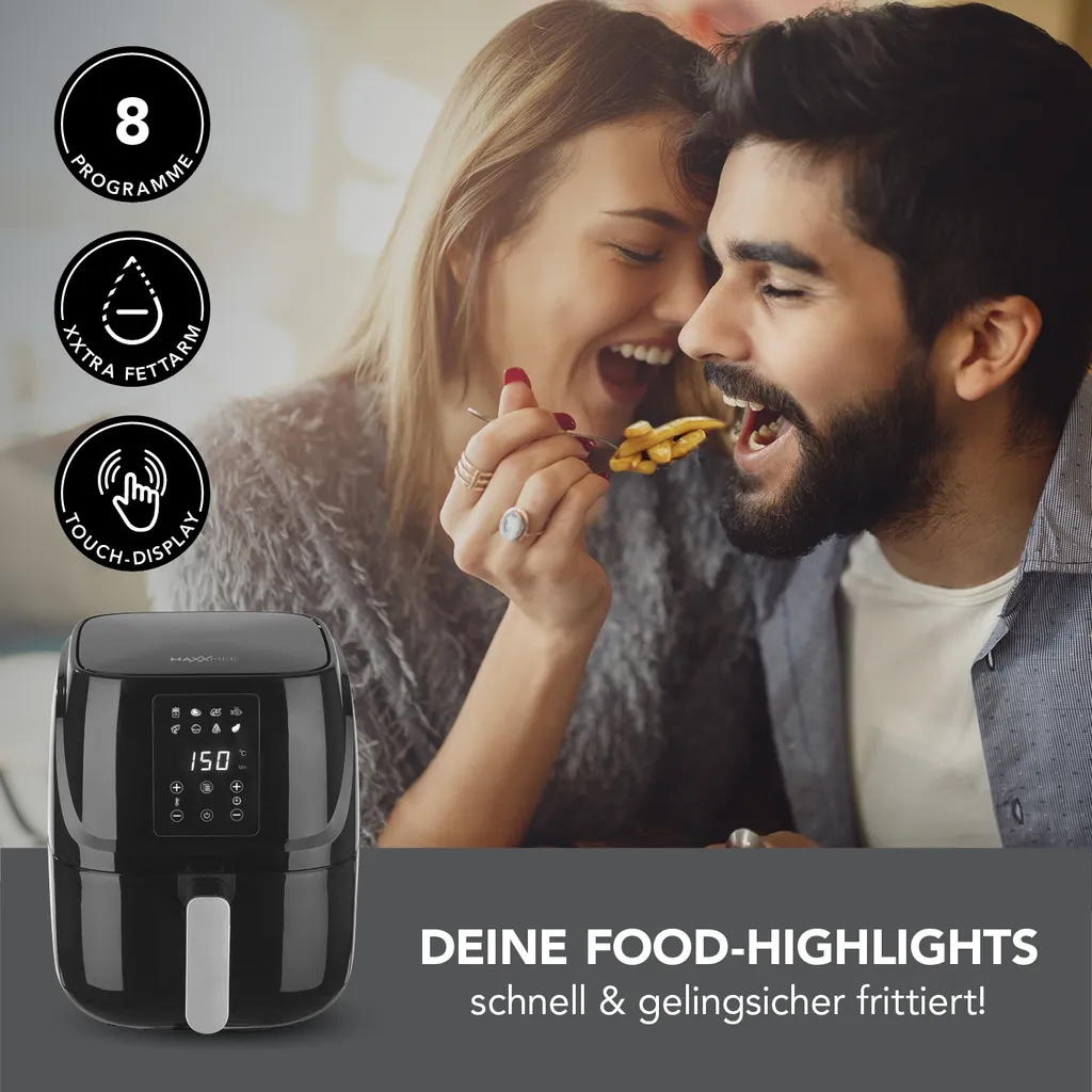 Heißluftfritteuse Fritteuse Fettarm Heißluft 1300W Touch Display Timer Schwarz