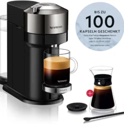 Nespresso Vertuo Kaffeekapselmaschine XN910C + VERTUO Carafe Set Pour-Over (610 Ml)